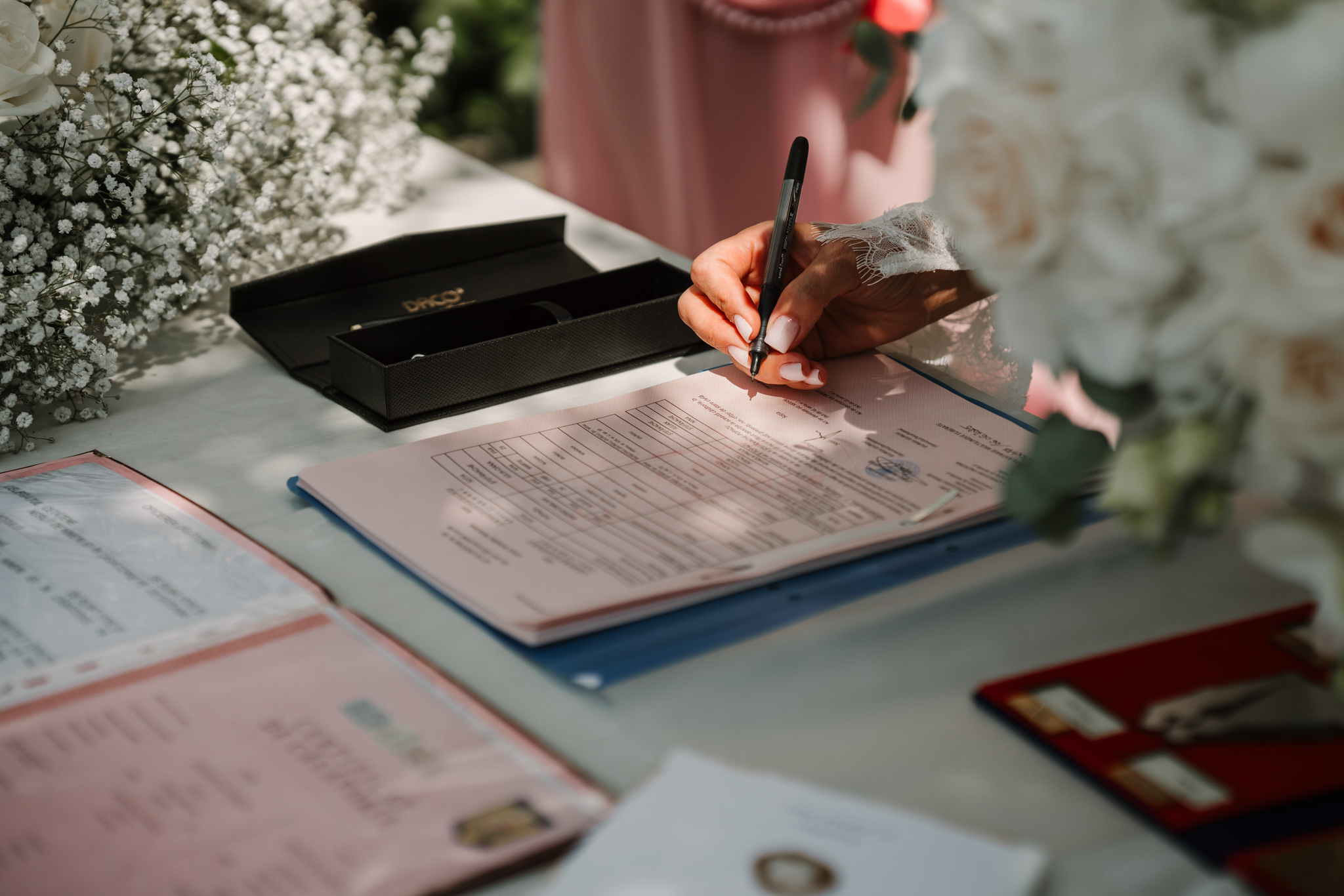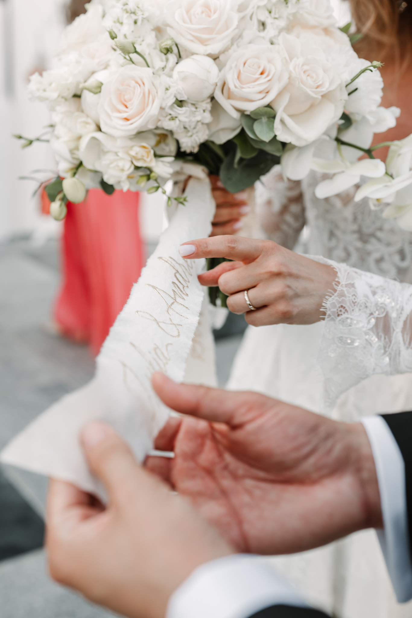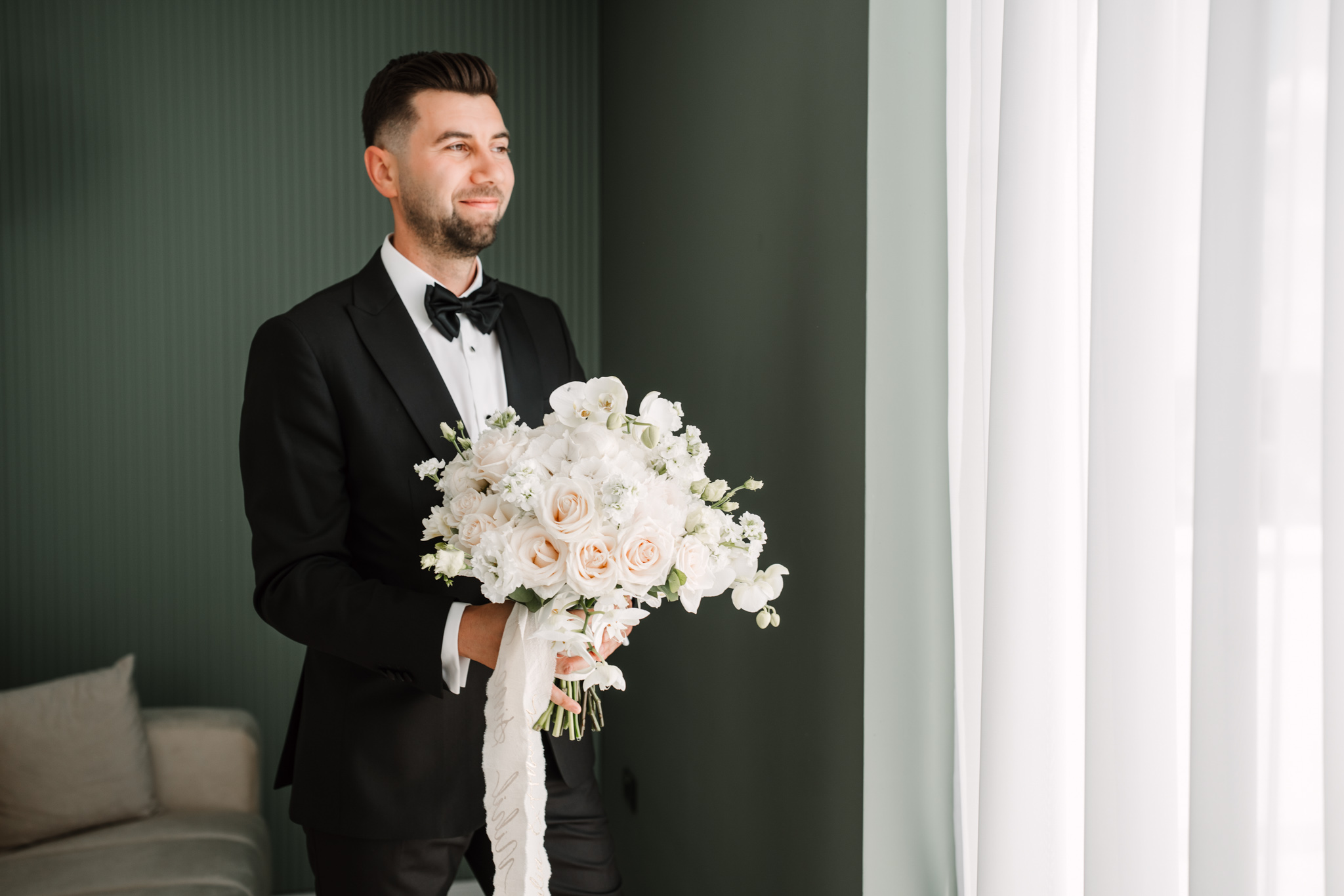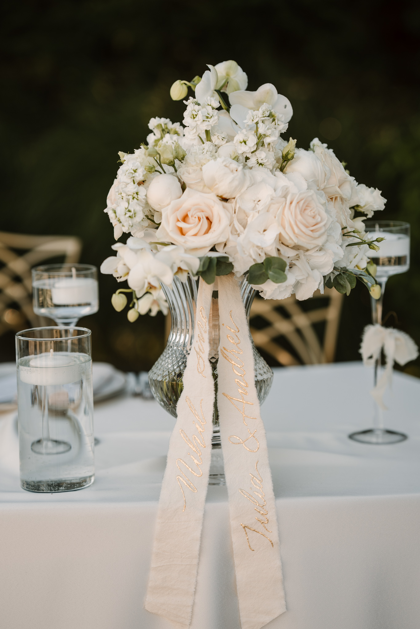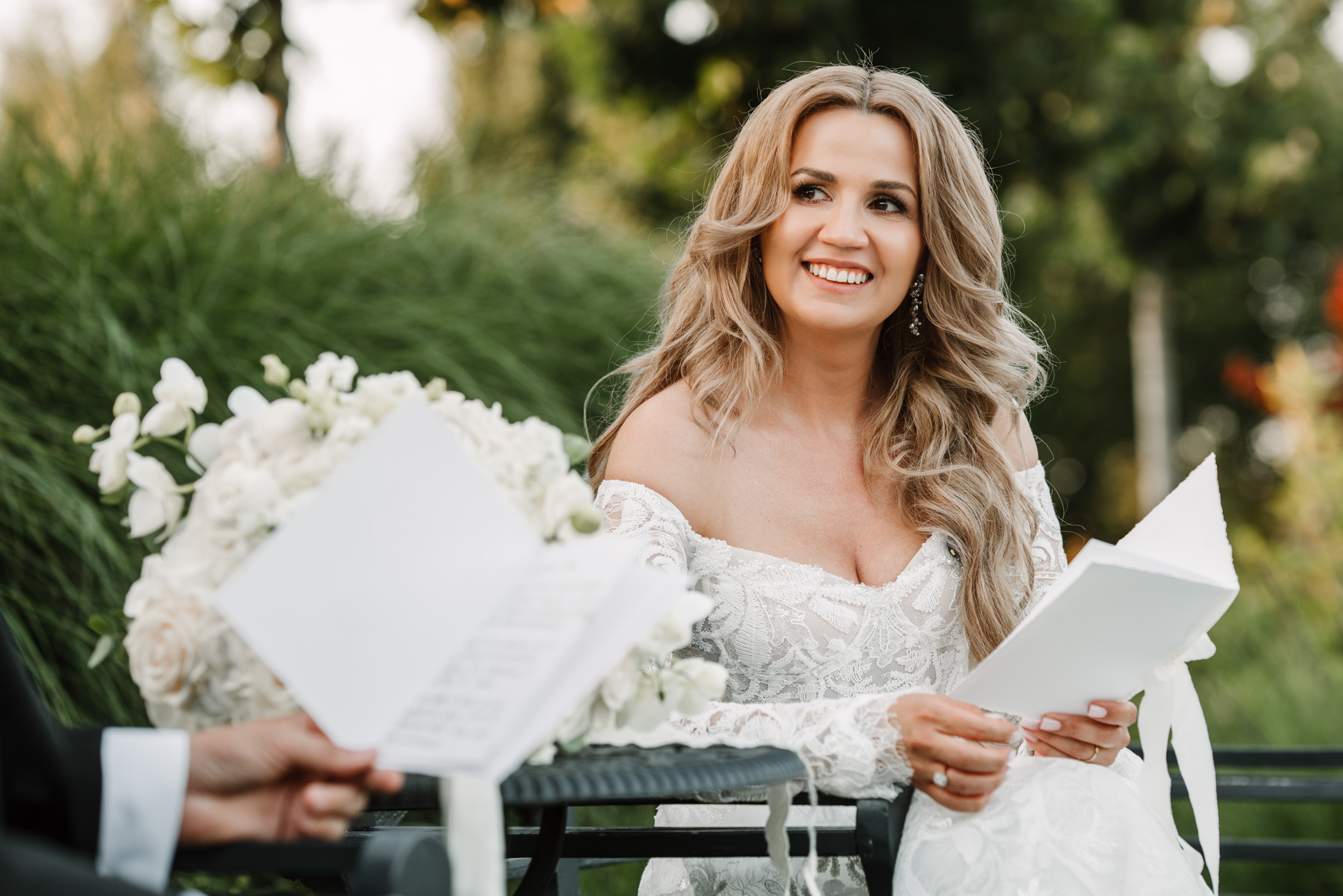 Ceremonia s-a ținut afară, între zone verzi și aranjamente florale. Dacă vrei să vezi exemple reale de fotografie de cununie civilă în București, îți recomandăm și nunta Andreei & Jonathan la Pădurile Regale.