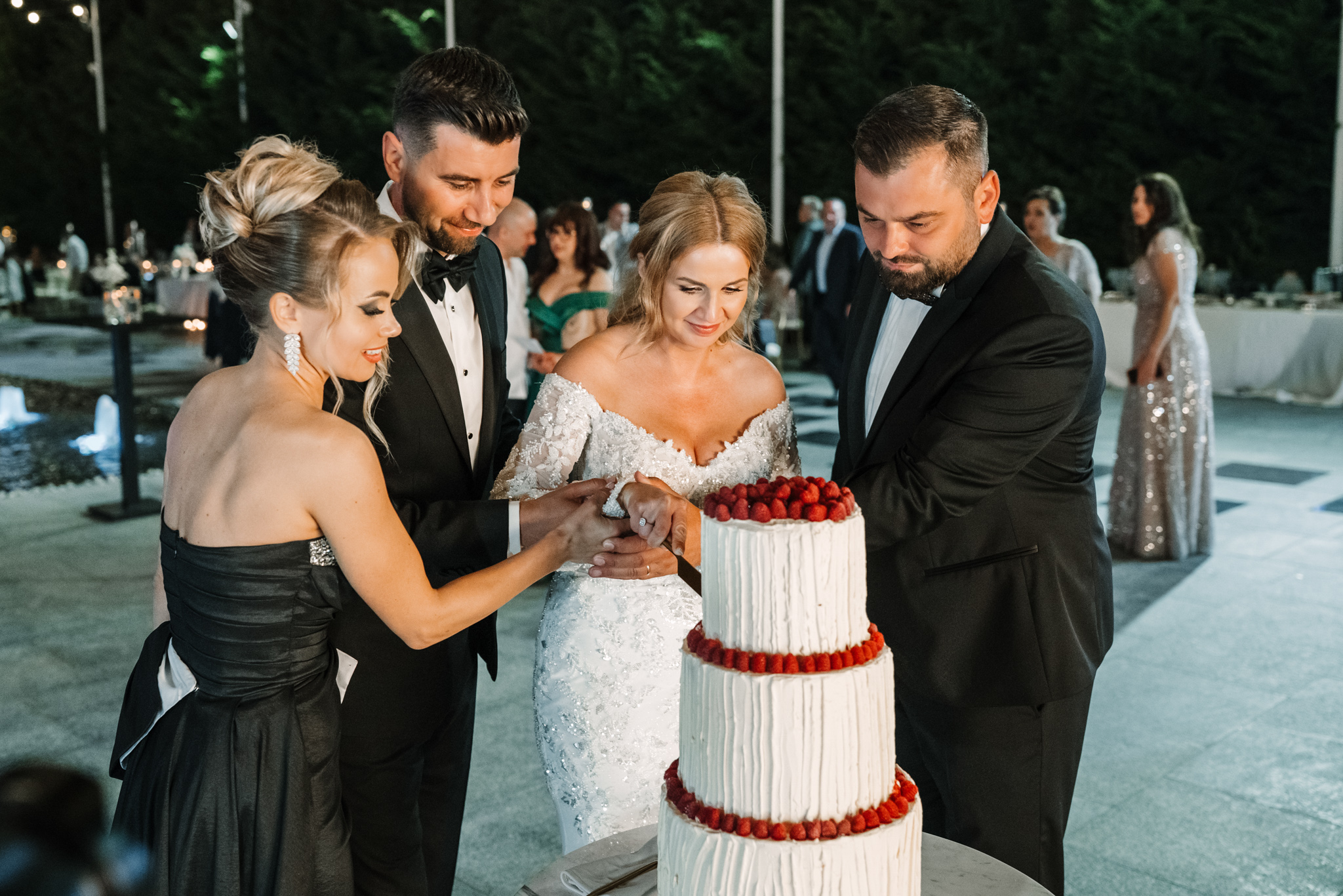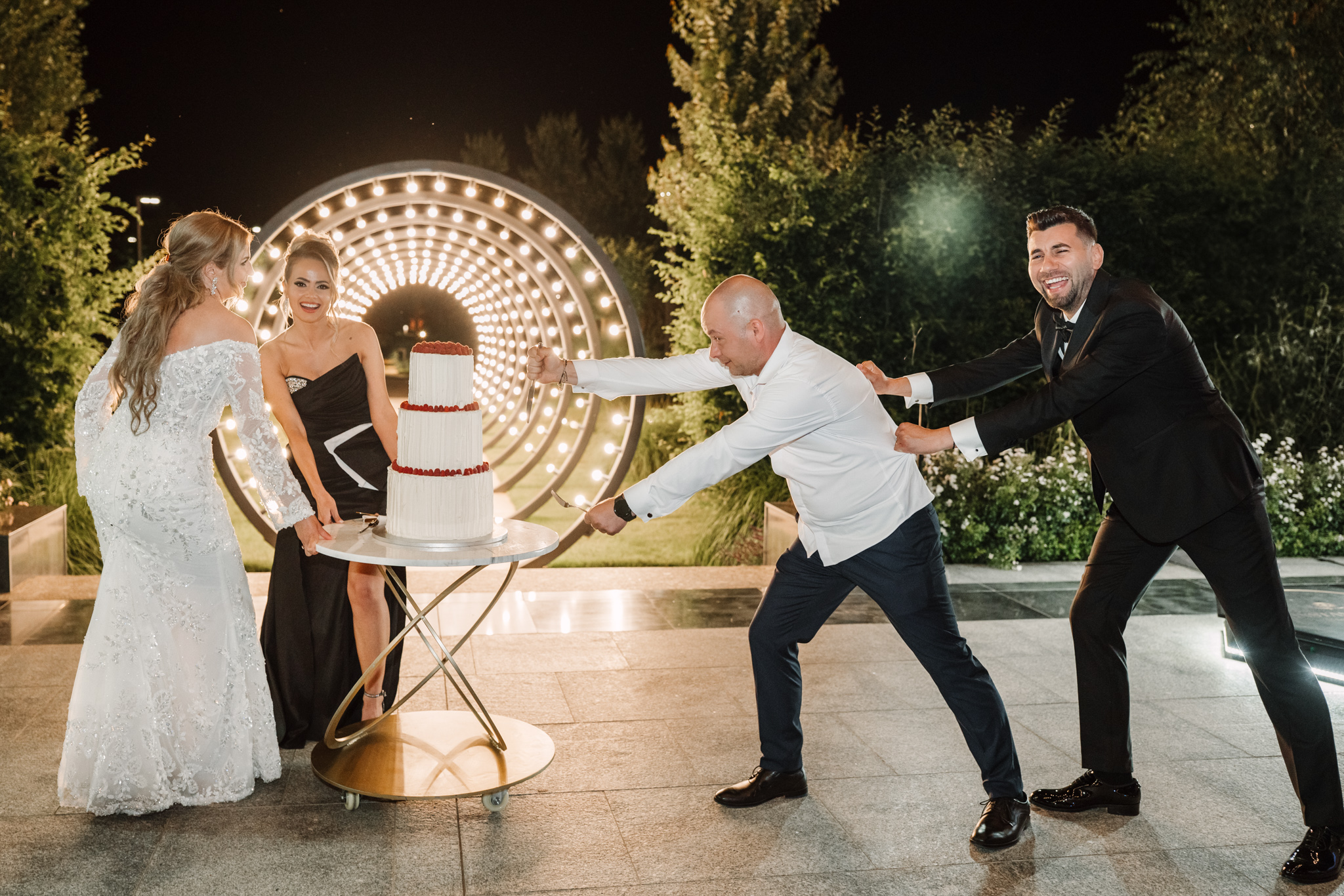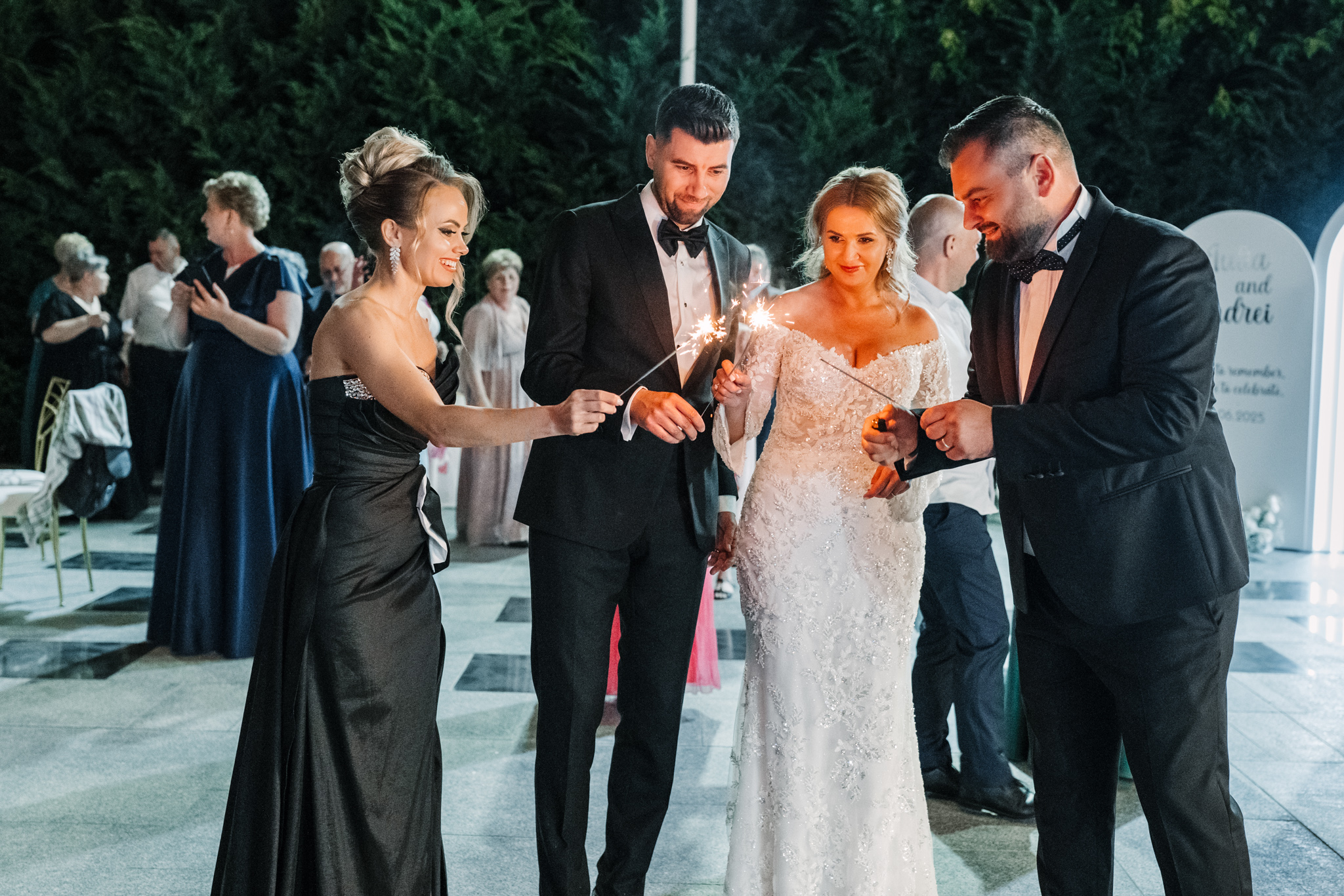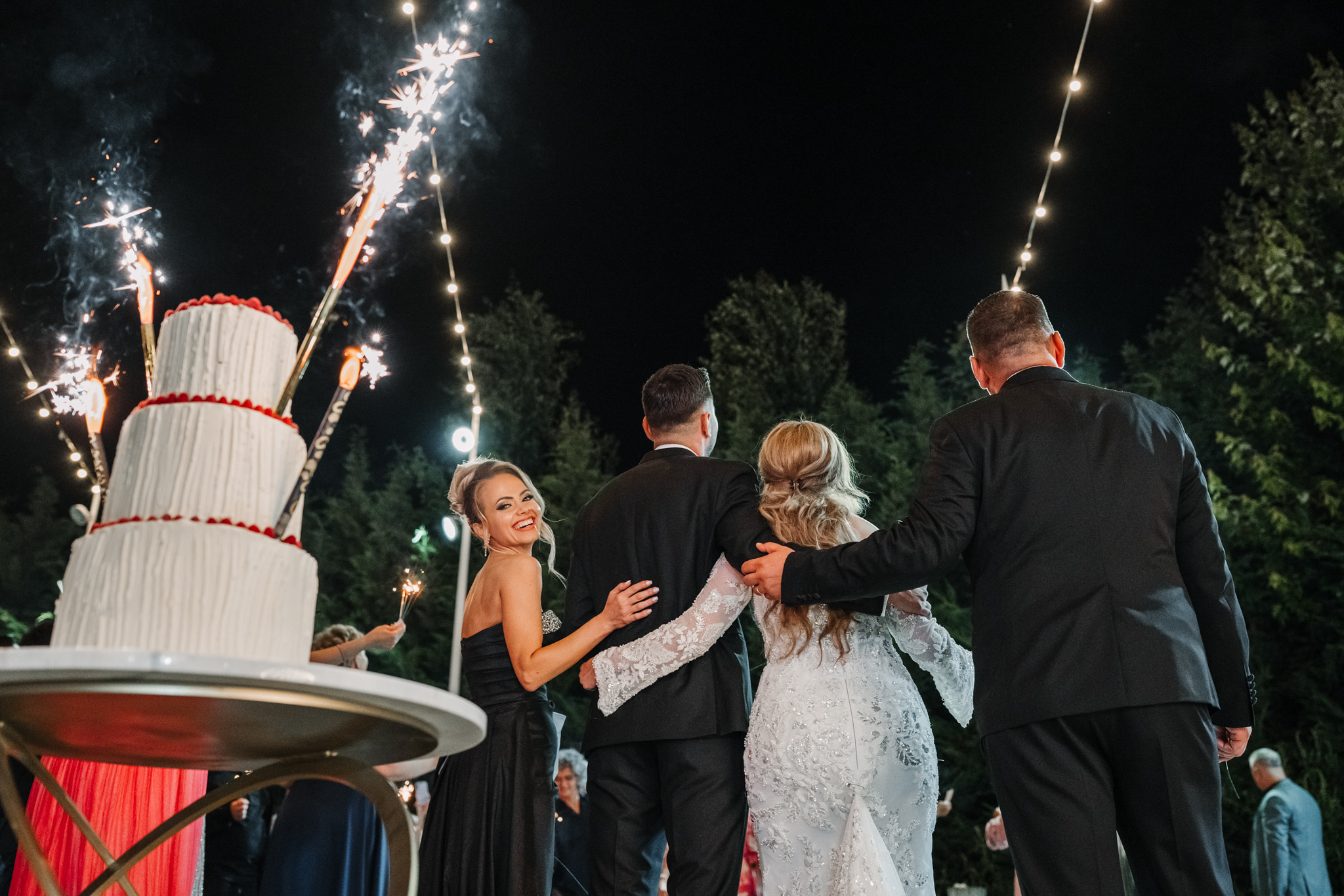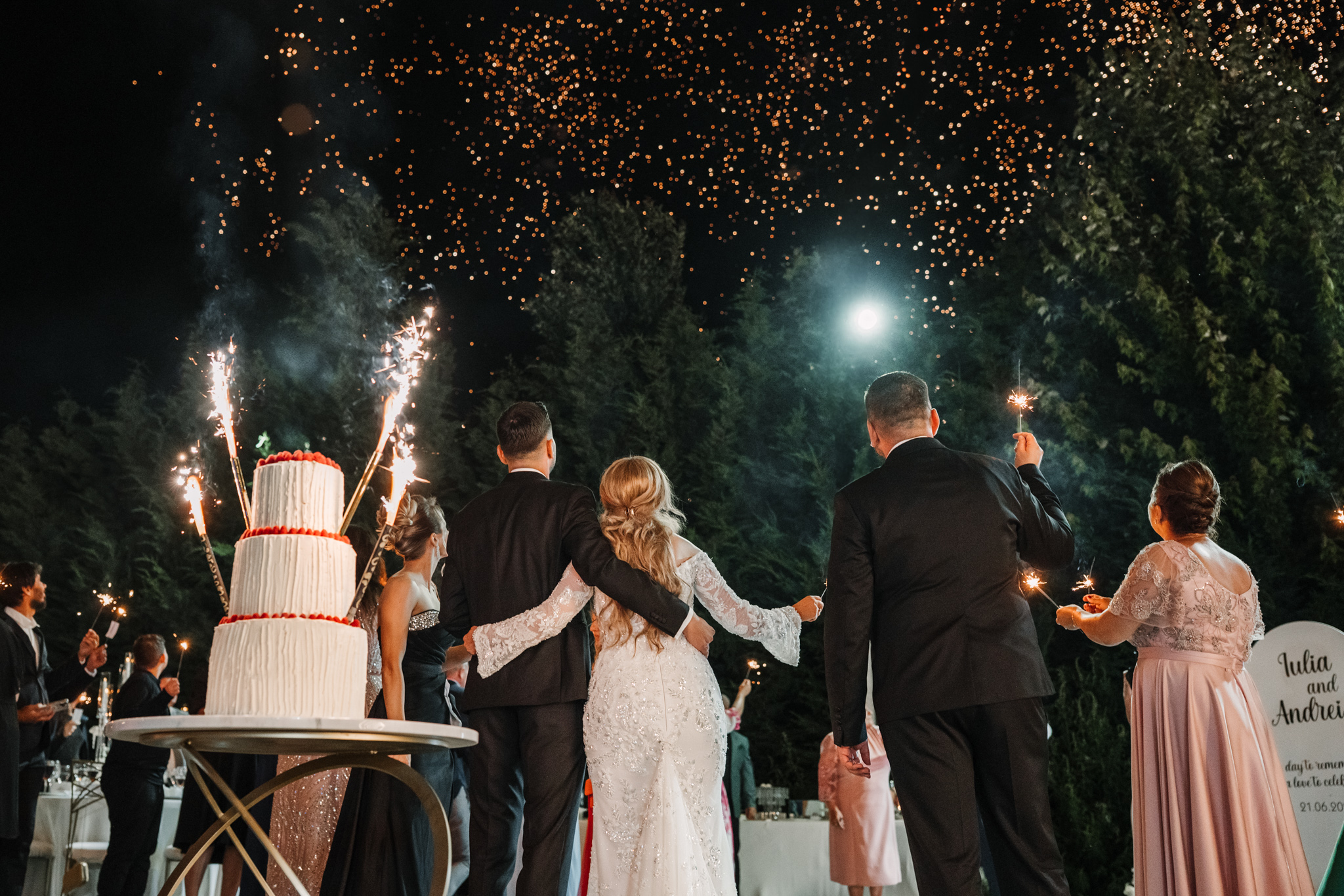 Seara a continuat afară, cu tort și artificii. Dacă iubești vibe-ul de grădină, aruncă un ochi și la o petrecere la Moon Events.